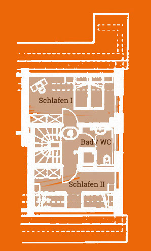 1 Schlafzimmer mit 2 Einzelbetten (100 x 200 cm). Dazu wiederum ein Duschbad/WC mit ebenerdig begehbarer Dusche.