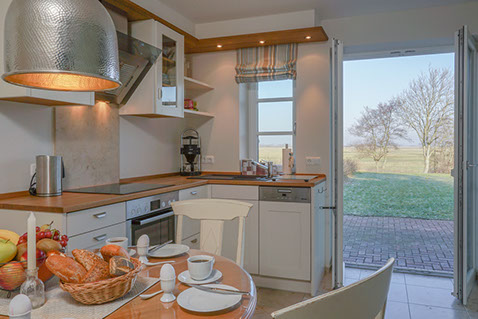 Ein Traum, eine Insel der Ruhe und dennoch nur 10 Minuten Fußweg zum Einkaufen oder mit dem Rad zum Strand. Unverbauter Blick ins „Weite Land“ bezaubert und macht neugierig!