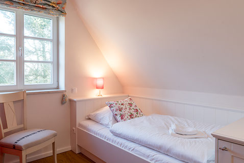 Das Dachgeschoss bietet ein weiteres gemütliches Schlafzimmer mit Einzelbett (140 x 200 cm).
